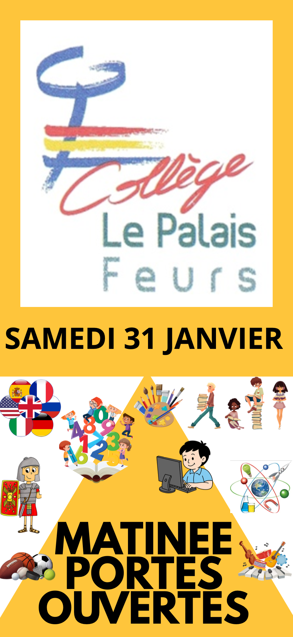Portes ouvertes au collège « Le Palais » 22 janvier 2026 AdminSMLActualités Le collège « Le Palais » de Feurs organise une matinée portes ouvertes le samedi 31 janvier.
